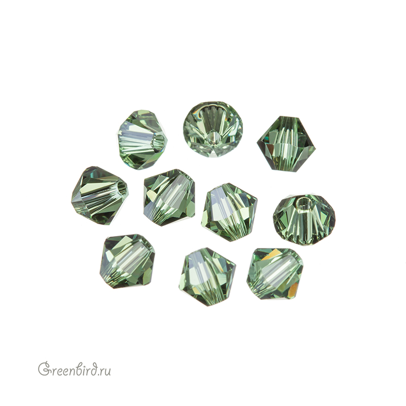 Компонент для бижутерии Swarovski – бусины-биконусы (Swarovski Биконусы). Размер: 5 мм, отверстие: 0,9 мм, цвет: Peridot (#214). Производство: Австрия. Цена указана за 10 шт.