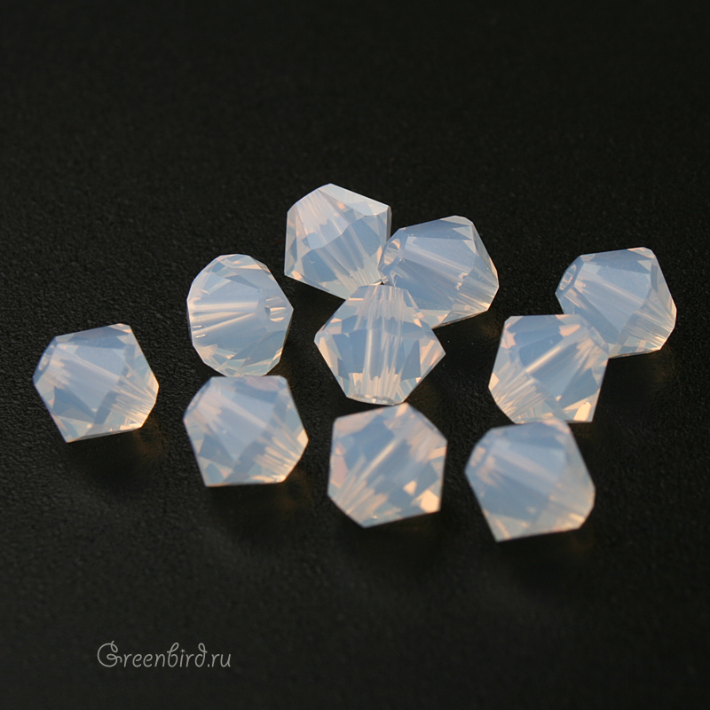 Компонент для бижутерии Swarovski – бусины-биконусы (Swarovski Биконусы). Размер: 5 мм, отверстие: 0,8 мм, цвет: White Opal (#234). Производство: Австрия. Цена указана за 10 шт.