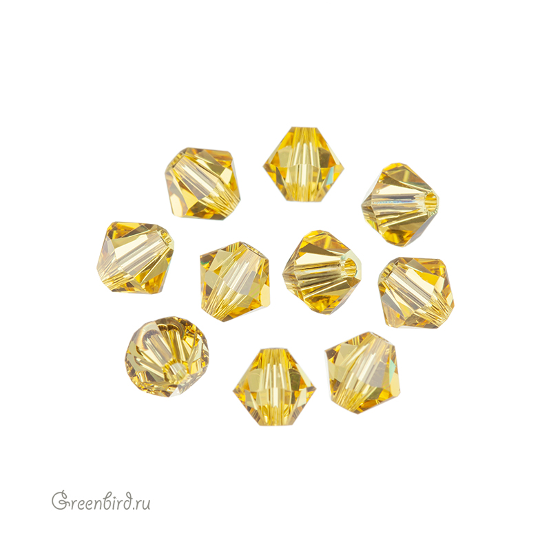 Компонент для бижутерии Swarovski – бусины-биконусы (Swarovski Биконусы). Размер: 5 мм, отверстие: 0,9 мм, цвет: Light Topaz (#226). Производство: Австрия. Цена указана за 10 шт.