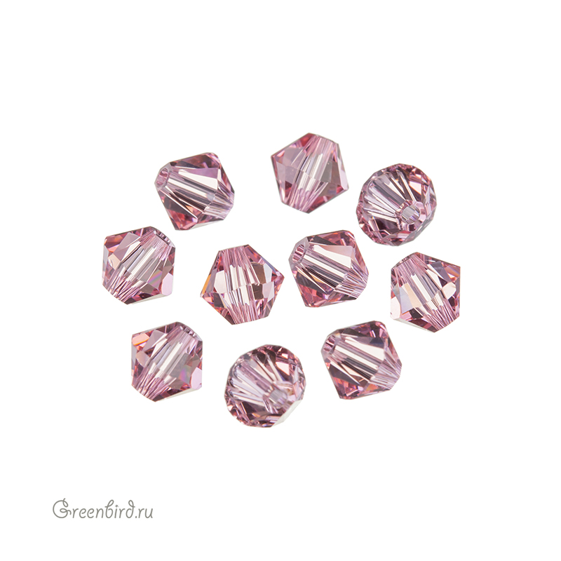 Компонент для бижутерии Swarovski – бусины-биконусы (Swarovski Биконусы). Размер: 5 мм, отверстие: 0,9 мм, цвет: Light Rose (#223). Производство: Австрия. Цена указана за 10 шт.
