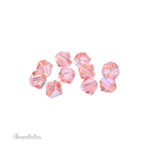 Компонент для бижутерии Swarovski – бусины-биконусы (Swarovski Биконусы). Размер: 5 мм, отверстие: 0,8 мм, цвет: Rose Peach Shimmer (#262SHIM). Производство: Австрия. Цена указана за 10 шт.