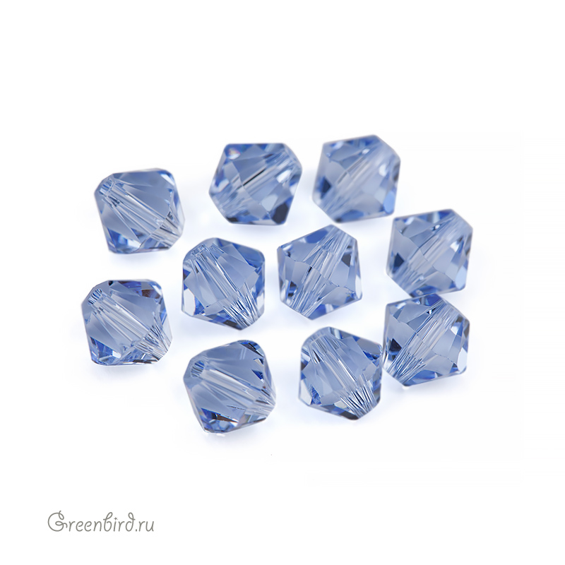 Компонент для бижутерии Swarovski – бусины-биконусы (Swarovski Биконусы). Размер: 6 мм, отверстие: 0,9 мм, цвет: Light Sapphire (#211). Производство: Австрия. Цена указана за 10 шт.\n