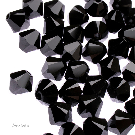 Компонент для бижутерии Swarovski – бусины-биконусы (Swarovski Биконусы). Размер: 6 мм, отверстие: 0,9 мм, цвет: Jet (#280). Производство: Австрия. Цена указана за 10 шт.