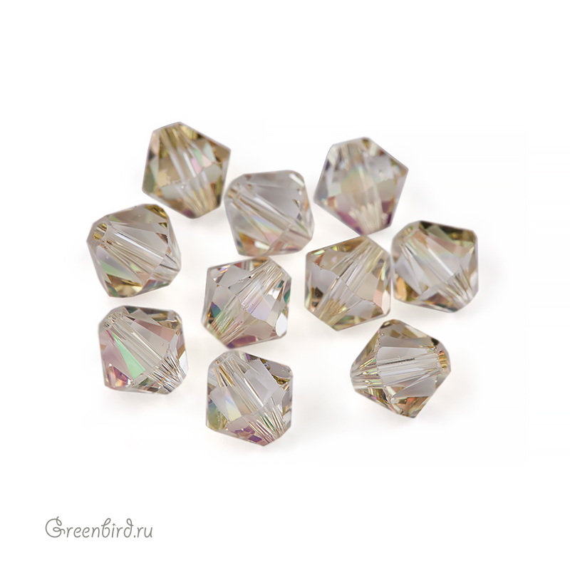 Компонент для бижутерии Swarovski – бусины-биконусы (Swarovski Биконусы). Размер: 6 мм, отверстие: 0,9 мм, цвет: Luminous Green (#001LUMG). Производство: Австрия. Цена указана за 10 шт.\n