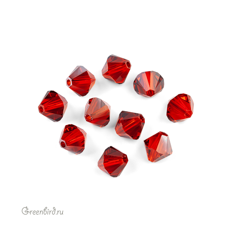 Компонент для бижутерии Swarovski – бусины-биконусы (Swarovski Биконусы). Размер: 6 мм, отверстие: 0,9 мм, цвет: Light Siam Satin (#227SAT). Производство: Австрия. Цена указана за 10 шт.