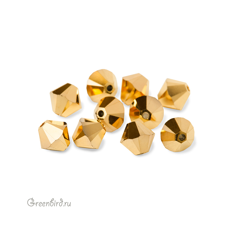 Компонент для бижутерии Swarovski – бусины-биконусы (Swarovski Биконусы). Размер: 6 мм, отверстие: 0,9 мм, цвет: Aurum 2X (#001AUR2). Производство: Австрия. Цена указана за 10 шт.\n