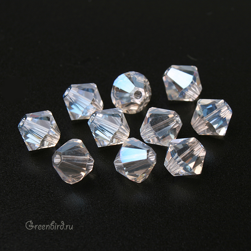 Компонент для бижутерии Swarovski – бусины-биконусы (Swarovski Биконусы). Размер: 6 мм, отверстие: 0,9 мм, цвет: Moonlight (#001MOL). Производство: Австрия. Цена указана за 10 шт.