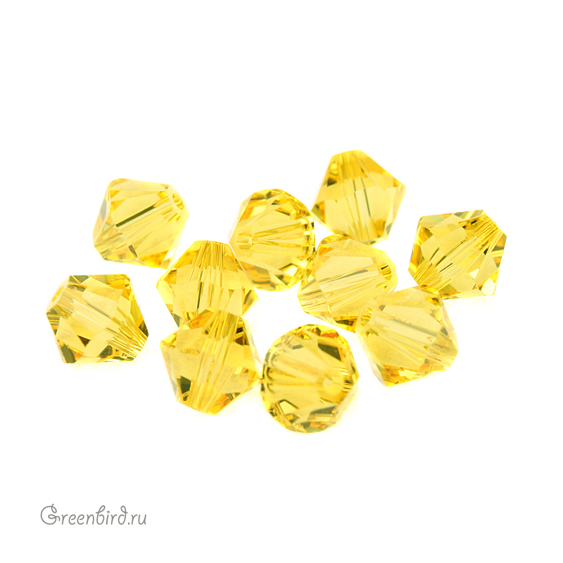 Компонент для бижутерии Swarovski – бусины-биконусы (Swarovski Биконусы). Размер: 6 мм, отверстие: 0,9 мм, цвет: Light Topaz (#226). Производство: Австрия. Цена указана за 10 шт.