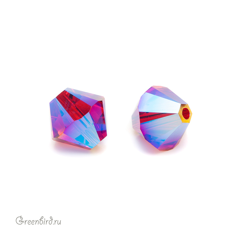 Компонент для бижутерии Swarovski – бусины-биконусы (Swarovski Биконусы). Размер: 8 мм, отверстие: 1,2 мм, цвет: Siam AB2X (#208AB2). Производство: Австрия. Цена указана за 1 шт.