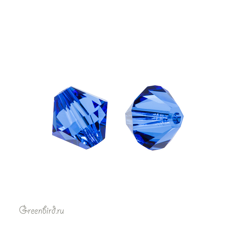 Компонент для бижутерии Swarovski – бусины-биконусы (Swarovski Биконусы). Размер: 8 мм, отверстие: 1,2 мм, цвет: Sapphire (#206). Производство: Австрия. Цена указана за 1 шт.