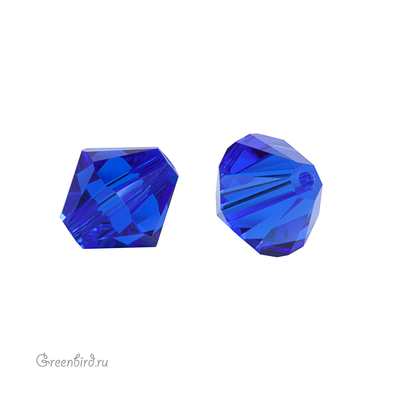 Компонент для бижутерии Swarovski – бусины-биконусы (Swarovski Биконусы). Размер: 8 мм, отверстие: 1,2 мм, цвет: Majestic Blue (#296). Производство: Австрия. Цена указана за 1 шт.