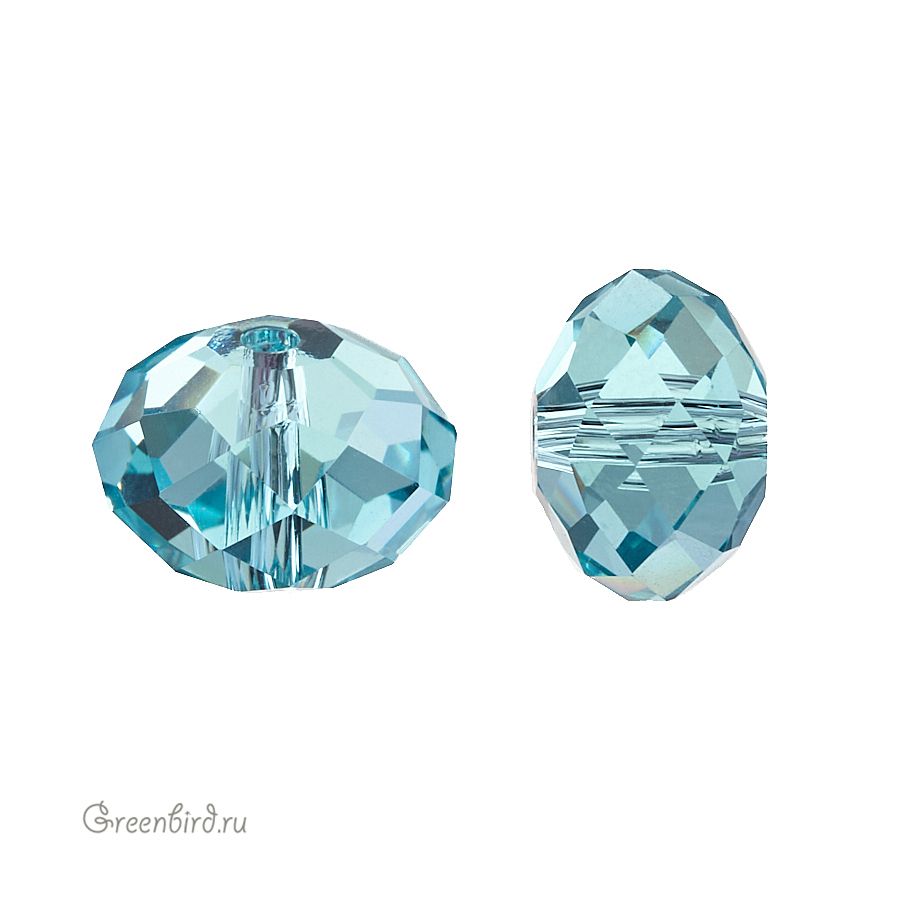 Swarovski 5040 Briolette Bead — бусина-рондель с огранкой «Бриолетт». Компонент для бижутерии Swarovski. Размер: 8 х 5,5 мм, отверстие: 1,1 мм. Цвет: светлая бирюза / Light Turquoise (#263). Материал: стекло. Производство: Австрия. Цена указана за 1 шт.