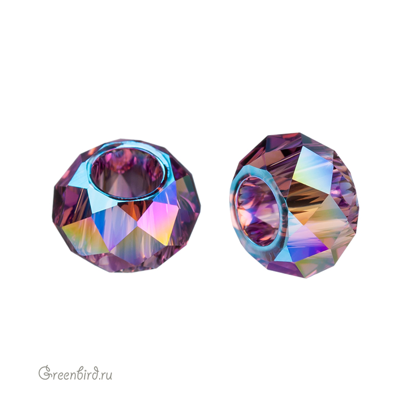 Swarovski 5042 Briolette XL Hole Bead — бусина-рондель с увеличенным отверстием, огранка «Бриолетт». Компонент для бижутерии Swarovski. Размер: 6 х 3,7 мм, отверстие: 2,5 мм. Цвет: аметист с мерцающим эффектом с двух сторон кристалла / Amethyst Shimmer 2X (#204SHIM2). Материал: стекло. Производство: Австрия. Цена указана за 1 шт.