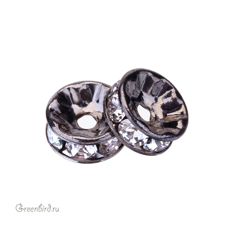 Компонент для бижутерии Swarovski - Rondelle (Рондель Swarovski со стразами). Материал: латунь, покрытие: Gun metal. Кристалл - арт. 1028 PP24, цвет: Crystal (#001), размер: 8 х 3,5 мм, размер отверстия: 1,6 мм. Производство: Австрия. Цена указана за 1 шт. Этот элемент снят с производства, мы продаем последние экземпляры.