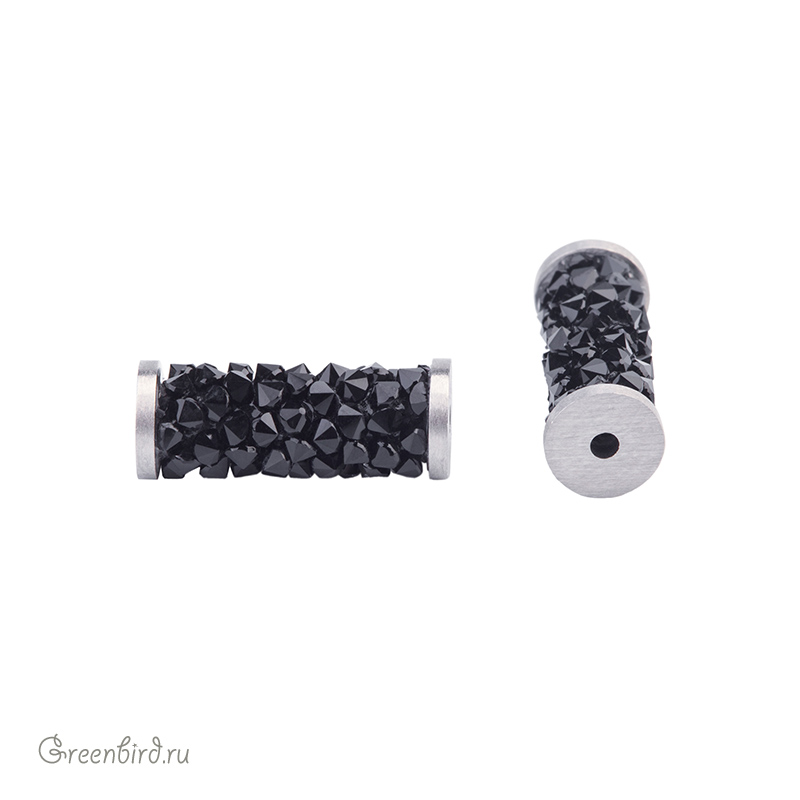 Компонент для бижутерии Swarovski — цилиндрическая бусина (Swarovski Fine Rocks Tube Bead). Размер с наконечниками: 17 х 6,6 мм, отверстие: 1,4 мм, цвет: Jet (#280), наконечники: сталь. Производство: Австрия. Цена указана за 1 шт.