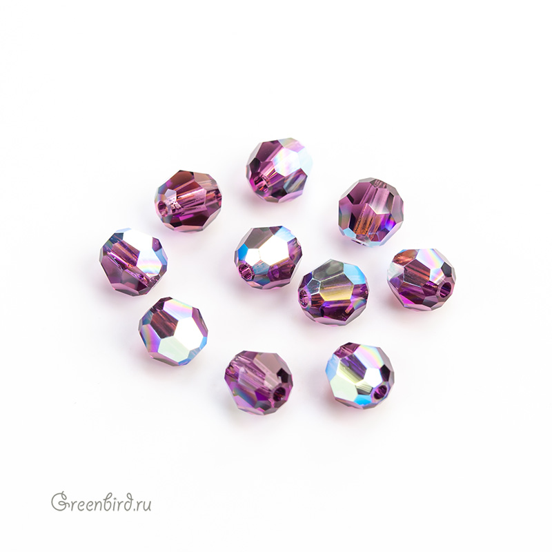Swarovski 5000 Round Bead — бусина круглая граненая. Компонент для бижутерии и вышивки. Размер: 4 мм, отверстие: 0,8 мм. Цвет: аметист с радужным эффектом / Amethyst AB (#204AB). Материал: стекло. Производство: Австрия. Цена указана за 10 шт.