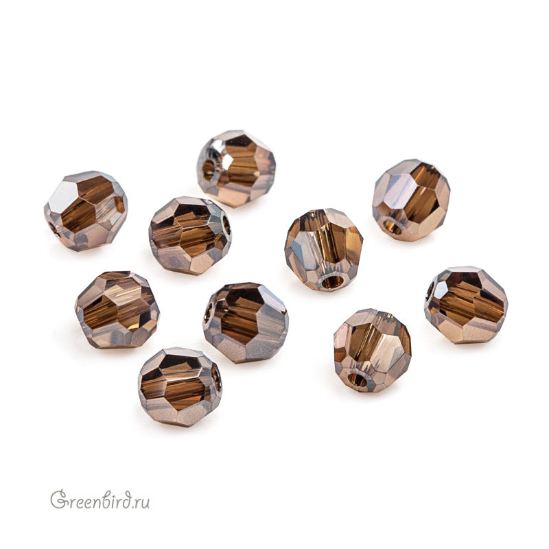 Swarovski 5000 Round Bead — бусина круглая граненая. Компонент для бижутерии и вышивки. Размер: 4 мм, отверстие: 0,8 мм. Цвет: прозрачный с эффектом "Бронзовая дымка" по всей поверхности кристалла / Crystal Bronze Shade Full Coating (#001BRSFC). Материал: стекло. Производство: Австрия. Цена указана за 10 шт.