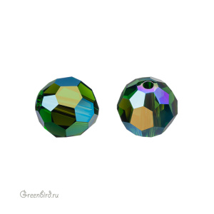 Компонент для бижутерии Swarovski – бусина Swarovski круглая граненая. Размер: 8 мм, отверстие: 1,2 мм, цвет: Dark Moss Green Aurore Boreale (#260AB). Производство: Австрия. Цена указана за 1 шт.