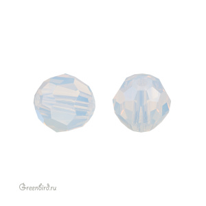 Swarovski 5000 Round Bead — бусина круглая граненая. Компонент для бижутерии и вышивки. Размер: 8 мм, отверстие: 1,2 мм. Цвет: белый опал с эффектом "Лунное сияние" / White Opal Moonlight (#234MOL). Материал: стекло. Производство: Австрия. Цена указана за 1 шт.