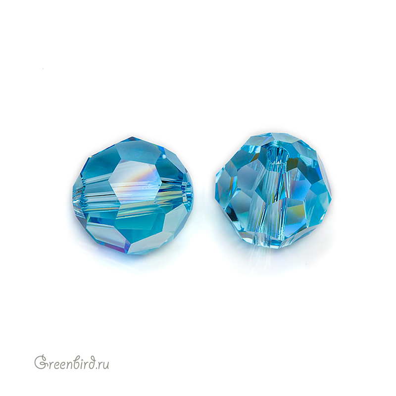 Компонент для бижутерии Swarovski – бусина Swarovski круглая граненая. Размер: 8 мм, отверстие: 1,4 мм, цвет: Aquamarine AB (#202AB). Производство: Австрия. Цена указана за 1 шт.\n