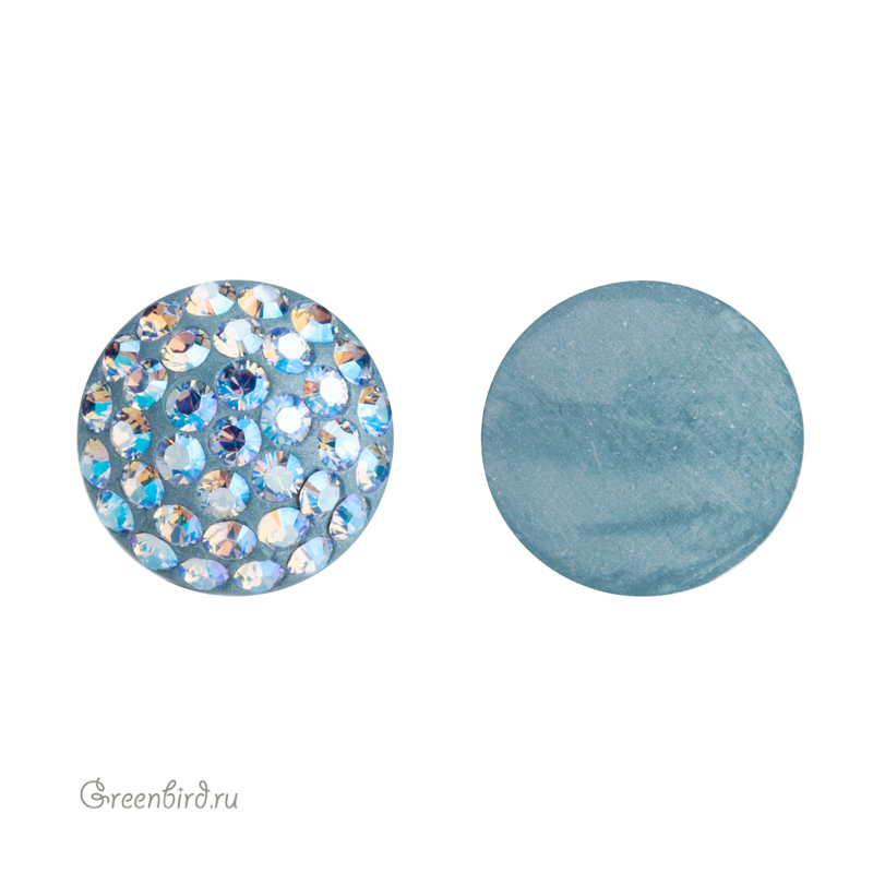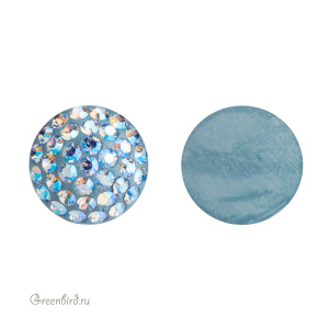Компонент для бижутерии Swarovski — BeCharmed Pave Cabochon (кабошон с кристальным паве). Цвет: Light Sapphire Shimmer (#211SHIM). Размер: 11,8-12,05 мм, высота 4,1-4,45 мм. Производство: Китай. Цена указана за 1 шт.