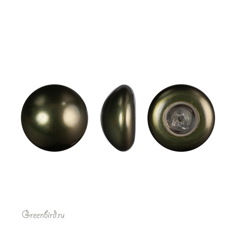 Swarovski 5817 Cabochon Half Drilled — полупросверленный хрустальный жемчуг полусферической формы (кабошон). Размер: 10 мм. Цвет: темно-зеленый / Dark Green (#814). Материал: стекло с инновационным перламутровым покрытием, имитирующим натуральный жемчуг. Производство: Австрия. Цена указана за 1 шт.