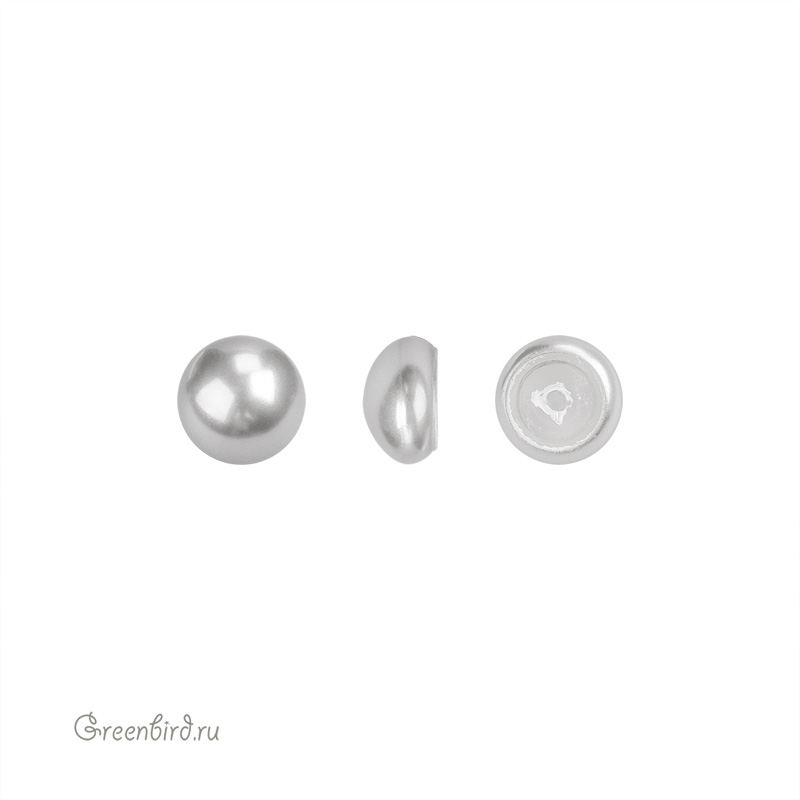 Swarovski 5817 Cabochon Half Drilled — полупросверленный хрустальный жемчуг полусферической формы (кабошон). Размер: 6 мм. Цвет: светло-серый / Light Grey (#616). Материал: стекло с инновационным перламутровым покрытием, имитирующим натуральный жемчуг. Производство: Австрия. Цена указана за 1 шт.