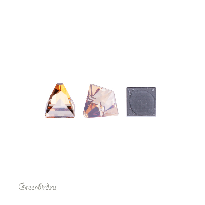 Кристалл с плоским основанием горячей фиксации Swarovski (клеевой страз) — Square Spike Flat Back (шип с квадратным основанием). Размер: 4 х 4 мм, цвет: Golden Shadow (#001GSHA), покрытие M-Foiled. Производство: Австрия. Цена указана за 1 шт.