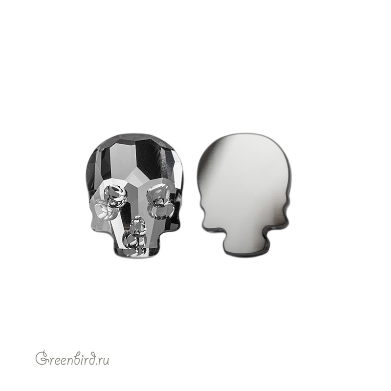 Кристалл с плоским основанием холодной фиксации Swarovski (клеевой страз) — Skull Flat Back (Череп). Размер: 10 x 7,5 мм, цвет: Silver Night (#001SINI). Производство: Австрия. Цена указана за 1 шт.