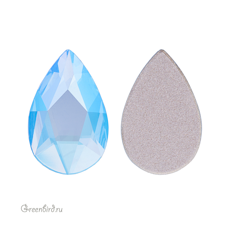 Кристалл с плоским основанием холодной фиксации Swarovski (клеевой страз) — Pear Flat Back (огранка Груша). Размер: 14 x 9 мм, цвет: Aquamarine Shimmer (#202SHIM). Производство: Австрия. Цена указана за 1 шт.