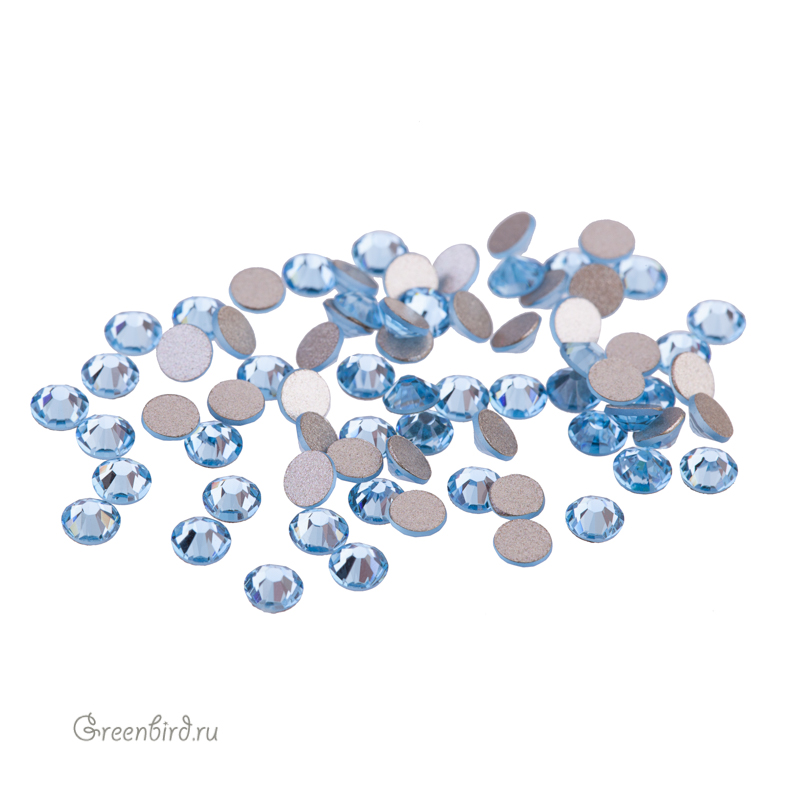 Кристалл с плоским основанием холодной фиксации Swarovski (клеевой страз) — Rose Flatback (круглая форма). Размер: SS9 (2,5 мм), цвет: Aquamarine (#202). Производство: Австрия. Цена указана за 72 шт.
