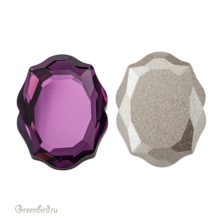 Кристалл Swarovski – Flat Oval Fancy Stone. Размер: 10 х 8 мм, высота: 2,50-2,63 мм, цвет: Amethyst (#204). Производство: Австрия. Цена указана за 1 шт.\n