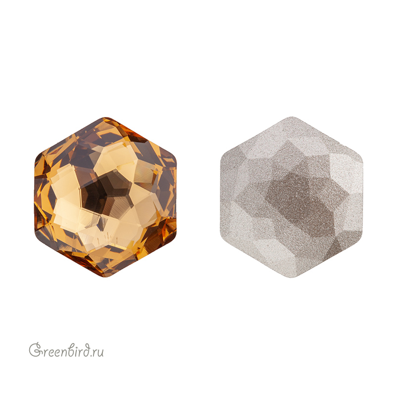 Swarovski 4683 Thin Hexagon Fancy Stone — кристалл шестиугольной формы (гексагон) с выразительной двусторонней огранкой. Компонент для бижутерии и вышивки. Размер: 14 х 15,8 мм. Цвет: светлый колорадский топаз с фольгированием / Light Colorado Topaz Foiled (#246). Материал: стекло. Производство: Австрия. Цена указана за 1 шт.