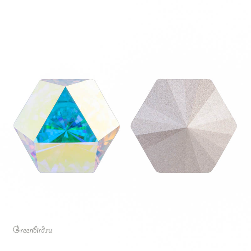 Swarovski 4699 Prismatic Hexagon Fancy Stone — кристалл шестиугольной формы (гексагон) и фантазийной огранкой, создающей эффект призмы. Компонент для бижутерии и вышивки. Размер: 20 х 22,9 мм. Цвет: прозрачный с радужным эффектом с фольгированием / Crystal Aurore Boreale Foiled (#001AB). Материал: стекло. Производство: Австрия. Цена указана за 1 шт.