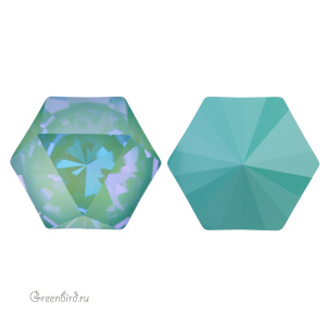 Swarovski 4699 Prismatic Hexagon Fancy Stone — кристалл шестиугольной формы (гексагон) и фантазийной огранкой, создающей эффект призмы. Компонент для бижутерии и вышивки. Размер: 20 х 22,9 мм. Цвет: прозрачный на подложке "Шелковистый шалфей" c эффектом делайт без фольги / Crystal Silky Sage DeLite Unfoiled (#001L147D). Материал: стекло. Производство: Австрия. Цена указана за 1 шт.