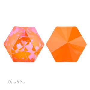 Swarovski 4699 Prismatic Hexagon Fancy Stone — кристалл шестиугольной формы (гексагон) и фантазийной огранкой, создающей эффект призмы. Компонент для бижутерии и вышивки. Размер: 20 х 22,9 мм. Цвет: прозрачный на подложке "Оранжевое сияние" c эффектом делайт без фольги / Crystal Orange Glow DeLite Unfoiled (#001L146D). Материал: стекло. Производство: Австрия. Цена указана за 1 шт.