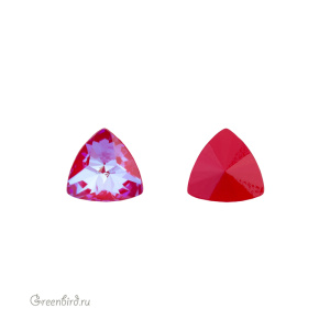Swarovski 4799 Prismatic Triangle Fancy Stone — кристалл треугольной формы со скругленными сторонами и фантазийной огранкой, создающей эффект призмы. Компонент для бижутерии и вышивки. Размер: 6 х 6,1 мм. Цвет: прозрачный на красной подложке c эффектом делайт без фольги / Crystal Royal Red DeLite Unfoiled (#001L107D). Материал: стекло. Производство: Австрия. Цена указана за 1 шт.