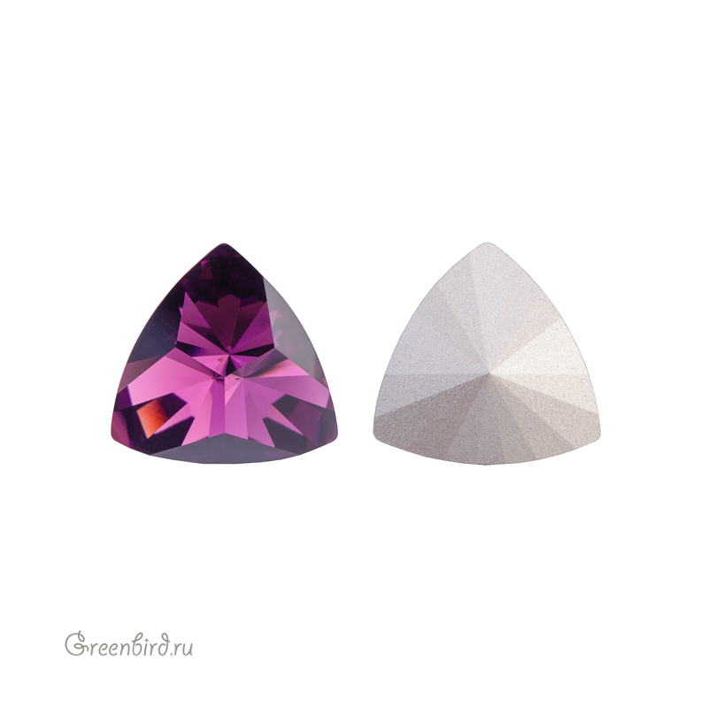 Swarovski 4799 Prismatic Triangle Fancy Stone — кристалл треугольной формы со скругленными сторонами и фантазийной огранкой, создающей эффект призмы. Компонент для бижутерии и вышивки. Размер: 6 х 6,1 мм. Цвет: аметист с фольгированием / Amethyst Foiled (#204). Материал: стекло. Производство: Австрия. Цена указана за 1 шт.