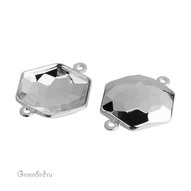 Оправа-коннектор для кристаллов Swarovski – 4683 Thin Hexagon Fancy Stone. Размер: 14 х 15,8 мм, металл: томпак (разновидность латуни), покрытие: родий. Цена указана за 1 шт.