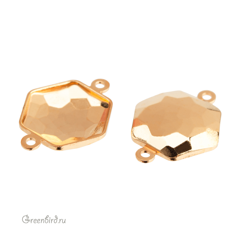 Оправа-коннектор для кристаллов Swarovski – 4683 Thin Hexagon Fancy Stone. Размер: 12 х 13,5 мм, металл: томпак (разновидность латуни), покрытие: золото. Цена указана за 1 шт.