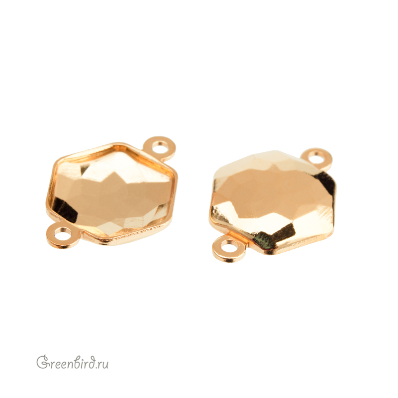 Оправа-коннектор для кристаллов Swarovski – 4683 Thin Hexagon Fancy Stone. Размер: 10 х 11,2 мм, металл: томпак (разновидность латуни), покрытие: золото. Цена указана за 1 шт.