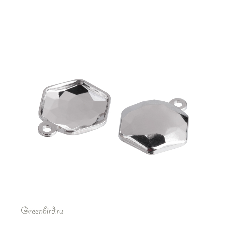 Оправа-подвеска для кристаллов Swarovski – 4683 Thin Hexagon Fancy Stone. Размер: 10 х 11,2 мм, металл: томпак (разновидность латуни), покрытие: родий. Цена указана за 1 шт.