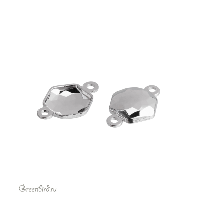 Оправа-коннектор для кристаллов Swarovski – 4683 Thin Hexagon Fancy Stone. Размер: 7,8 х 8,7 мм, металл: томпак (разновидность латуни), покрытие: родий. Цена указана за 1 шт.