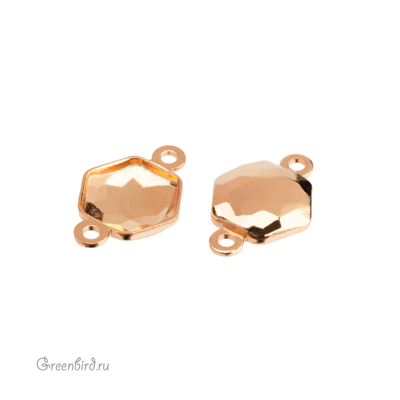 Оправа-коннектор для кристаллов Swarovski – 4683 Thin Hexagon Fancy Stone. Размер: 7,8 х 8,7 мм, металл: томпак (разновидность латуни), покрытие: золото. Цена указана за 1 шт.