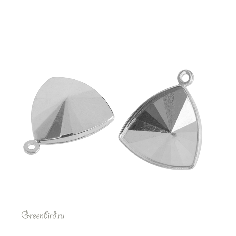 Оправа-подвеска для кристаллов Swarovski – 4799 Prismatic Triangle Fancy Stone. Размер: 14 х 14,3 мм, металл: томпак (разновидность латуни), покрытие: родий. Цена указана за 1 шт.