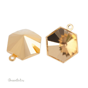 Оправа-подвеска для кристаллов Swarovski – 4699 Prismatic Hexagon Fancy Stone. Размер: 14 х 16 мм, металл: томпак (разновидность латуни), покрытие: золото. Цена указана за 1 шт.
