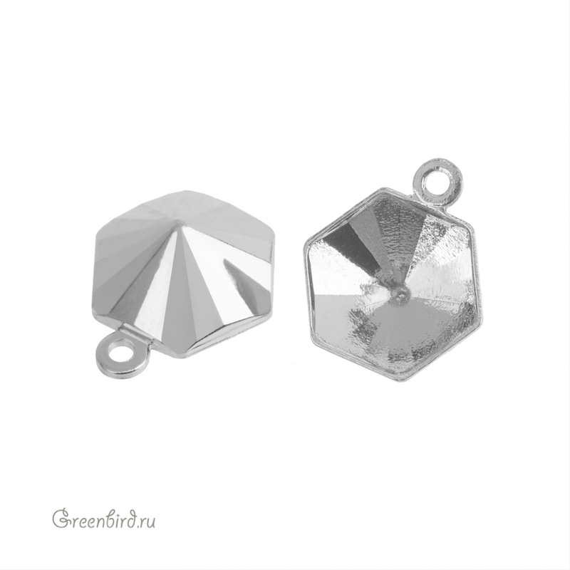 Оправа-подвеска для кристаллов Swarovski – 4699 Prismatic Hexagon Fancy Stone. Размер: 9,4 х 10,8 мм, металл: томпак (разновидность латуни), покрытие: родий. Цена указана за 1 шт.