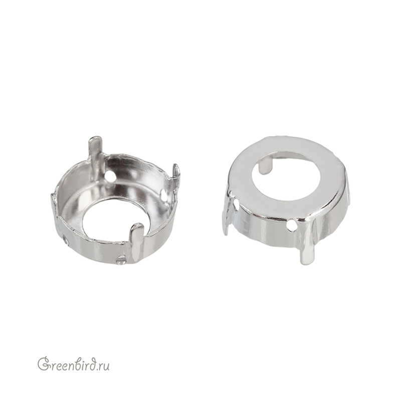 Оправа для круглых ювелирных кристаллов Риволи – 1122 Rivoli. Размер: 14 мм, высота боковой стороны (без лапок): 4,45 мм, отверстия: 1 мм. Материал: томпак (разновидность латуни), покрытие: платина. Производство: Германия. Цена указана за 1 шт.