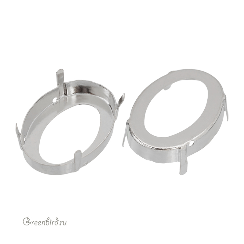 Оправа для овальных ювелирных кристаллов – 4127 Oval FS 30х22 мм. Высота боковой стороны (без лапок): 4,6 мм, отверстия: 1,2 мм. Материал: томпак (разновидность латуни), покрытие: белая бронза (white bronze, сплав меди с оловом и цинком). Производство: Германия. Цена указана за 1 шт.