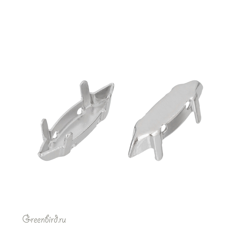 Оправа для ювелирных кристаллов – 4200 Marquise Fancy Stone FS. Размер: 15 х 4 мм, высота боковой стороны (без лапок): 2,3-2,4 мм, отверстия: 0,8 мм. Материал: томпак (разновидность латуни), покрытие: белая бронза (white bronze, сплав меди с оловом и цинком). Производство: Германия. Цена указана за 1 шт.